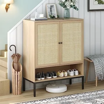 Brafab Elegant Shoe Storage Cabinet with Natural Rattan Doors and Adjustable Shelves