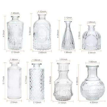 Brajttt Clear Flower Vase Set, Glass Bud Vase in Bulk Set of 8,Artistic and Cultural Flavor Mini Vases for Home Office Decor, Bedroom, Office, Living Room Decorations,Wedding