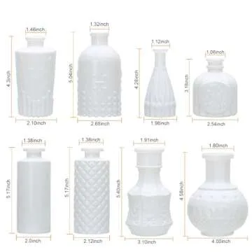 Brajttt White Flower Vase Set, Glass Bud Vase in Bulk Set of 8,Artistic and Cultural Flavor Mini Vases for Home Office Decor, Bedroom, Office, Living Room Decorations,Wedding
