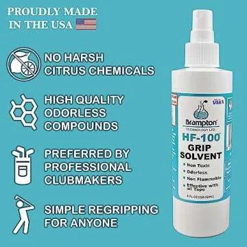 Brampton HF-100 Premium Golf Grip Solvent for Regripping Golf Clubs and Golf Grip Repair - Shake and Spray Golf Grip Solution - Non-Toxic, Non-Flammable, and Odorless Golf Grip Solvent (8oz)