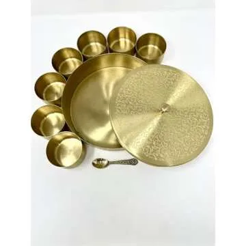 Brass Indian Spice Box, Brass masala Dabba, Brass Spice Box with 7 container & Spoon, Authentic Spices, Masala Box with Individual containers | Size 8 x 8 x 2 IN (Indian Spice Box Only)