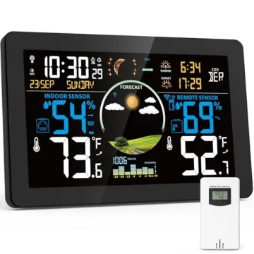 The Brataste Weather Station stands out with its 7.5'' HD VA display, offering superior clarity and viewing angles compared to competitors' smaller or lower-quality screens. Its advanced sensor technology ensures 50% greater accuracy, and the inclusion of an atomic clock and DST function provides unmatched timekeeping precision. The ability to connect up to three wireless sensors for multi-location monitoring is a feature rarely found in similarly priced models, making Brataste a top choice for comprehensive home weather stations.