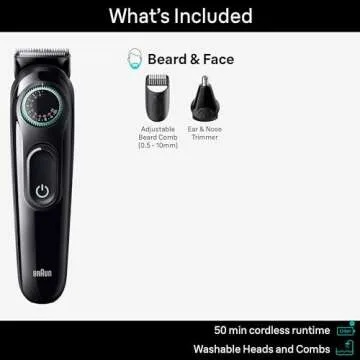 Show moreIntroducing the Braun All-In-One Style Kit Series 3 3430, the ultimate grooming solution for the modern man! This meticulously crafted 3-in-1 trimmer is not just a grooming tool; it’s a complete style kit designed to meet all your grooming needs in an elegant package. With its innovative Precision Wheel featuring 20 length settings in 0.02” increments, achieving your desired look has never been more precise or easier. Whether you're trimming your beard, or managing unwanted hair in your ears and nose, this versatile device is your one-stop grooming companion.