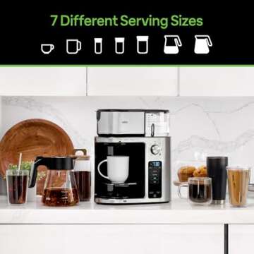 This coffee maker also features a MultiServe Dial, allowing you to choose from 7 different brewing sizes, whether you want a single pod-free cup or a full carafe for guests. Plus, the sustainable, pod-free design eliminates waste and reduces costs while making excellent coffee!