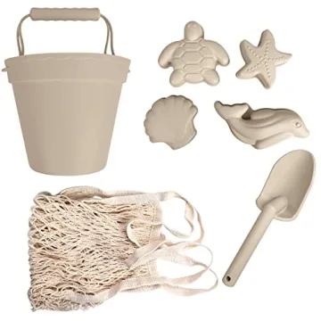 Show more Introducing the BraveJusticeKidsCo. Silicone Beach Toys – the ultimate travel-friendly beach set designed specifically for toddlers and young kids. Made from 100% premium soft silicone, these charming and functional toys are not only BPA free, but they are also phthalate and lead free, ensuring safety during your child’s beach adventures. This stylish set includes a durable bucket, a sturdy shovel, and four delightful sand molds, each boasting vibrant colors that are both appealing and practical. The included beach bag is perfect for easy transportation, making it an essential accessory for family outings to the beach or pool.