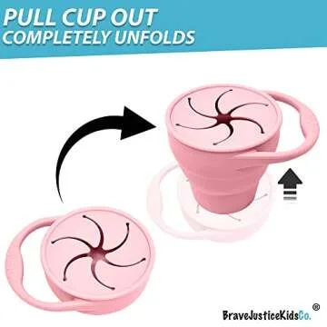 BraveJusticeKidsCo Snack Attack Snack Cup - Collapsible Silicone Snack Container for Toddlers