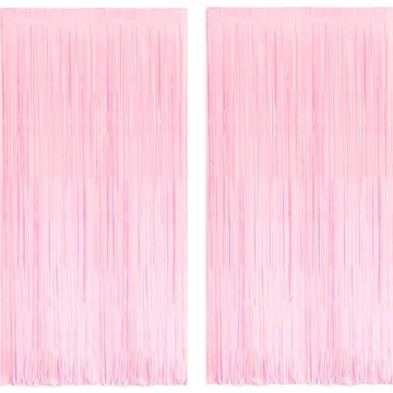 BRAVESHINE Macaron Pink Foil Fringe Curtains Tinsel Backdrop - 2 Pack Party Essentials