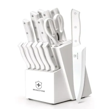 BRAVESTONE Self Sharpening Knife Set - 15 Piece with Block, Dishwasher Safe