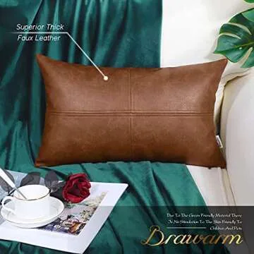 BRAWARM Faux Leather Throw Pillow Covers 12 X 20 Inches, Brown Leather Pillow Cover, Hand Stitched Leather Decorative Lumbar Pillow Cover for Couch Sofa Bed Living Room Home Garden