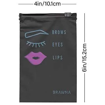 Show more Discover the perfect blend of style and functionality with the BRAWNA 50 Pack Black Eyebrow Microblading Aftercare Bags. These charming, waterproof zipper bags are designed specifically for beauty enthusiasts, ensuring that your essentials are securely stored while you flaunt your unique flair. Made from strong, lightweight plastic, these bags provide a durable and reliable option for organizing your cosmetics and beauty supplies without the worry of wear. Their adorable designs, featuring playful brow and lash patterns, add a delightful touch to any beauty regimen.