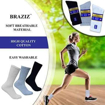 Braziz Diabetic Socks 12 Pairs Premium Soft Breathable Cotton Diabetic Socks Women Men Comfort Top Non-Binding Crew Socks (White, Size 9-11 shoe size 5-10)