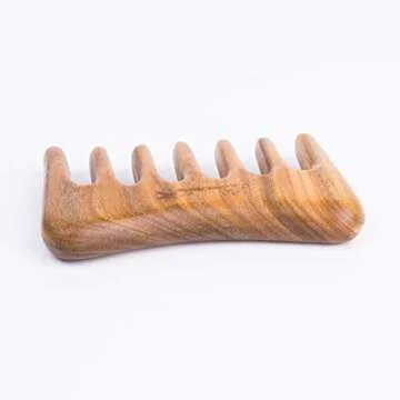 Show more If you are in search of a perfect grooming accessory that combines functionality with an elegant aesthetic, look no further than the Breezelike Wooden Wide Tooth Comb. Crafted from authentic natural green sandalwood, this comb is not only a beauty tool but also a statement piece. At approximately 3.8 inches long, its compact size makes it exceptionally easy to carry in your bags or purses, ensuring that you are always prepared to detangle your hair on the go.