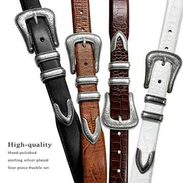Brenton Italian Calfskin Genuine Leather Designer Dress Belt with Western Silver Plated Buckle Set - Assembled in The USA (Lizard Black, 34)