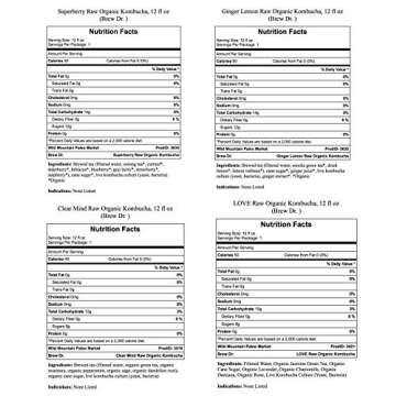 Brew Dr. Raw Organic Kombucha 4 Flavor Variety Pack - 4 Cans Total (12 Fl Oz Each)