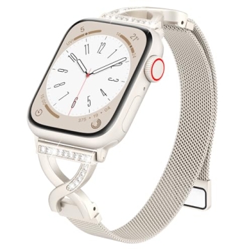 Show moreThe BRG band for Apple Watch combines style and functionality in a beautifully crafted design that caters to the modern woman. This luxury watch band features a striking X-shaped metal buckle adorned with shimmering diamonds, merging elegance with a unique charm. Its classic and chic appearance makes it a perfect accessory for both casual outings and formal events, elevating any outfit with a splash of sophistication. Engineered for comfort, this watch band is lightweight yet robust, allowing for effortless wear throughout the day, whether you are at a banquet or enjoying a leisurely day out.