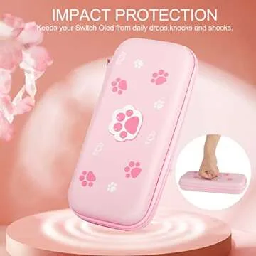 BRHE Cute Cat Paw Switch Carrying Case Pink for Nintendo Switch OLED Model 2021/Switch 2017, Portable Protective Hard Shell Girl Bag with Pendant and Thumb Grip Caps