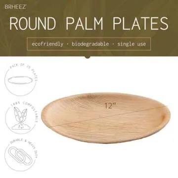 brheez Palm Leaf Party Plates 25 Ct 12 Inch Eco Friendly Compostable Biodegradable Elegant Bamboo Look Disposable Party Plates Heavy Duty More Environmentally Friendlier Then Paper Plates