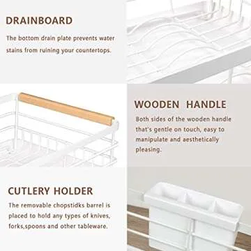 BRIAN & DANY Dish Drying Rack, Dish Racks for Kitchen Counter, Stainless Steel Dish Drainer with Removable Cutlery Holder & Drainboard, White
