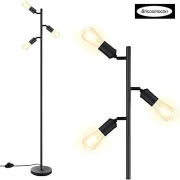 Show moreThe Bricosmocon Industrial Floor Lamp is not just a lighting fixture; it’s a perfect blend of style, functionality, and convenience designed to illuminate your living space. This standing lamp features three adjustable rotating lights that allow you to tailor the brightness and direction of light exactly where you need it. Compatible with standard E26 sockets, you can effortlessly use various medium base light bulbs, including energy-efficient LED, CFL, and beautiful RGB options, enriching your home’s ambiance while being eco-friendly.