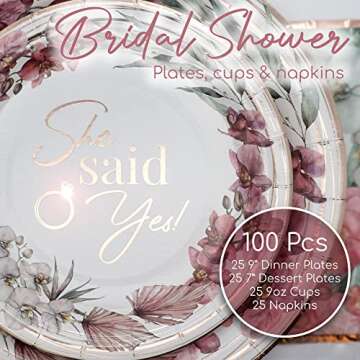 Bridal Shower Decorations She Said Yes Party Plates Cups Napkins Dinnerware Set for 25 Rose Gold Engagement Bachelorette Party Decor