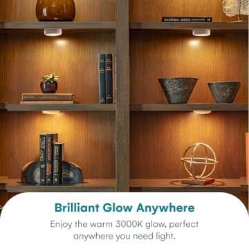 Show moreIlluminate your spaces effortlessly with the Bright Evolution Under Cabinet Lights. Designed for those who prioritize both functionality and style, these innovative lights offer a quick and easy installation process that can be customized to fit any environment. Whether in your kitchen, closet, or pantry, these battery-operated LED puck lights provide instant brightness where you need it most, enhancing your space with their warm white glow. Say goodbye to dimly lit corners and hello to a world of light.