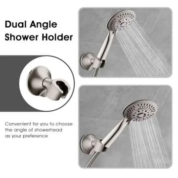 BRIGHT SHOWERS Handheld Shower Head Holder with Dual Angle Positions, Wall Suction Bracket Includes Adhesive 3M Disc, No Tools Required and Easy Installation, Brushed Nickel Finish