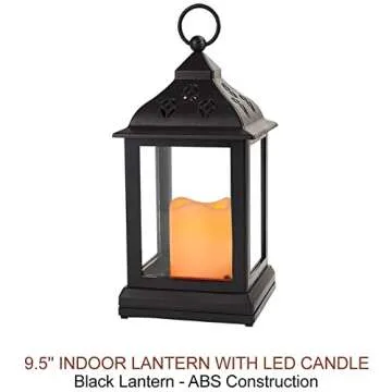 Bright Zeal 2-Pack 9.5" Vintage Decorative Candle Lantern with LED Flickering Flameless Candle (Black, 8hr Timer) - Indoor Hanging Lanterns Decorative Lanterns Battery Powered LED Candle Timer Candle
