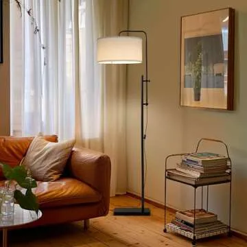 Brightech Leo Mid-Century Modern Standing Lamp for Bedroom, Contemporary Lamp for Living Rooms & Offices, Tall Lamp with Heavy Base, LED Floor Lamp, Great Living Room Décor - Black