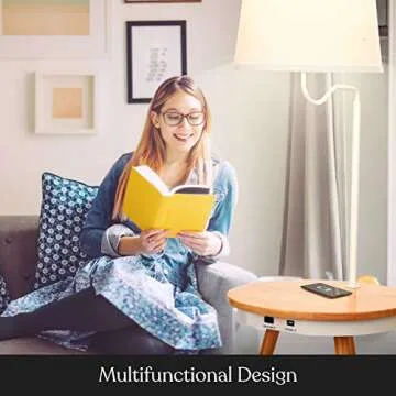 Show more Introducing the Brightech Owen Combination End Table with Built-in Lamp, a perfect blend of style and functionality for your home. This contemporary piece is designed not just to be a beautiful addition to your space but also to make your life easier. Attached to the table is a chic lamp that illuminates your room with a warm, inviting glow, making it perfect for cozy evenings and reading sessions.
