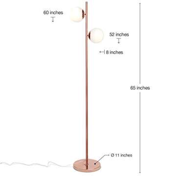 Brightech Sphere Floor Lamp for Living Room, Mid-Century Modern 2 Globe Pole Light for Bedroom, Bright LED Standing Lamps for Offices, Contemporary Living Room Décor – Rose Gold