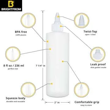 BRIGHTFROM Condiment Squeeze Bottles, 8 OZ Empty Squirt Bottle with Twist Top Cap, Leak Proof - Great for Ketchup, Mustard, Syrup, Sauces, Dressing, Oil, Arts and Crafts, BPA FREE Plastic - 2 PACK
