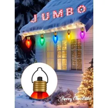 Brightown Solar Jumbo C9 Christmas Lights Outdoor - 18FT 10 LED C9 Christmas Pathway Lights with Remote, Timer,8 Modes, Solar Christmas Outdoor Decorations for Lawn Walkway Outside Holiday, Multicolor