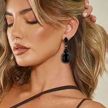 BriLove Wedding Bridal Dangle Earrings for Women Emerald Cut Crystal Infinity Figure 8 Chandelier Jewelry Black Black-Silver-Tone