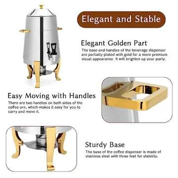 BriSunshine 13L Hot Beverage Dispenser, Stainless Steel Coffee Chafer Urn Hot Drinks Dispenser with Spigot for Parties Event Buffet Catering (3.5 Gallon, About 52 Cup)