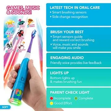 Compared to traditional toothbrushes, the BriteBrush™ offers a unique interactive experience that transforms the chore of brushing into a game. Unlike standard electric toothbrushes that may lack engaging features, BriteBrush™ combines education and entertainment, ensuring that children stay motivated and excited about personal hygiene. It's also designed with specially formulated soft heads that are gentle on young gums, setting it apart from competitors that might overlook comfort in favor of effectiveness. This toothbrush not only emphasizes gameplay but also allows children to take ownership of their brushing routine by providing them with feedback.