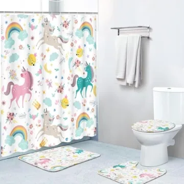 Delightful Britimes 4 Piece Shower Curtain Set for Kids' Bathrooms with Unicorn Theme