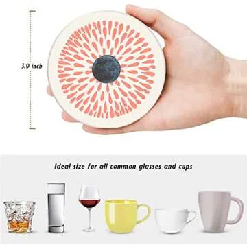 Britimes Coaster for Drinks Set of 6, Watercolor Doodle Circles Flower Absorbent Round Ceramic Stone Mat, with Cork Base and Metal Holder, Gift for Housewarming Room Bar Decor