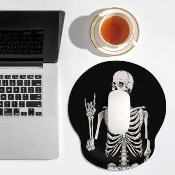 Britimes Ergonomic Mouse Pad with Wrist Support Black Human Skeleton Skull Non-Slip Rubber Base Mousepad for Home Office Gaming Working Computers Laptop Easy Typing & Pain Relief
