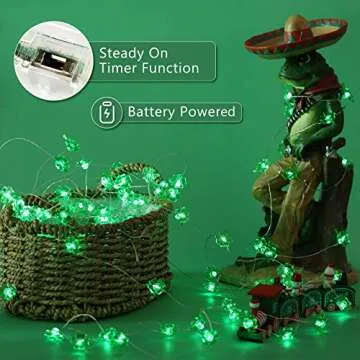 BrizLabs 2 Pack Shamrock String Lights, 17.06ft 50 LED Green Lucky Clover Light, Battery Powered Silver Wire Lights for St.Patrick's Day Irish Day Party Home Decor