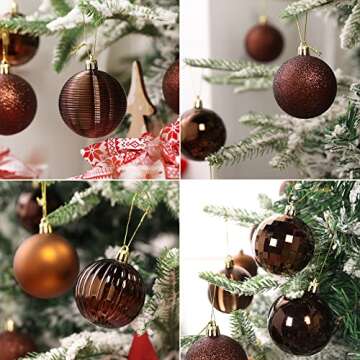 Brizled Brown Christmas Balls, 34pcs 2.36" Christmas Tree Ornaments, Plastic Christmas Balls Decorative Hanging Christmas Ball Ornaments Xmas Tree Baubles for Halloween Xmas Tree Wreath Garland Party