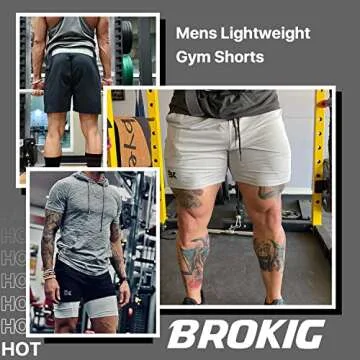 BROKIG Men's Lightweight Gym Shorts,Bodybuilding Quick Dry Running Athletic Workout Shorts for Men with Pockets(Black, Medium)