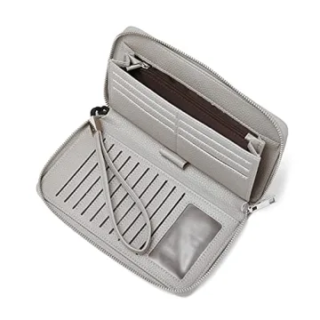 BROMEN Womens Wallet RFID Blocking Large Capacity Wristlet Phone Holder Zip Around Leather Clutch Purse Grey