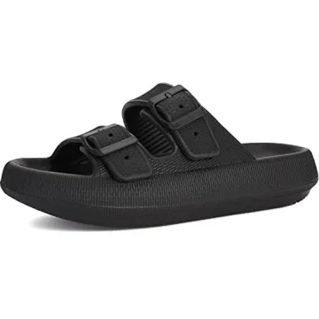 Show more Introducing the BRONAX Cloud Slides – the ultimate solution for comfort, style, and functionality that caters to both men and women. Whether you're lounging around the house, stepping out to the pool, or enjoying a day at the beach, these slides are your go-to footwear. The slides boast a 1.7-inch thick elevated sole, expertly designed to provide unmatched comfort and effective pain relief for all foot types. Crafted from flexible EVA material, these slippers guarantee a lightweight, soft touch that feels great against your skin, making them the ideal option for all-day wear.