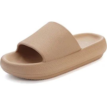Constructed with high-quality EVA, these slipper sandals are your best defense against fatigue and discomfort, gracefully conforming to your feet's needs. The broad single strap provides a secure yet comfortable fit, allowing you to experience unrestricted movement. A word of advice: to maintain their shape and longevity, avoid exposing them to high temperatures. These slippers stand out not just in functionality but also in style – perfect as shower shoes and for kicking back around the house. Users love their effortless slip-on design combined with a chic look, allowing them to transition seamlessly from bathroom to living room, all while maintaining a sense of fashion. With their durable materials, cleaning becomes a breeze – simply wipe them down and you're good to go. In essence, the BRONAX Pillow Slippers are more than just footwear; they are a blissful retreat for your weary feet.