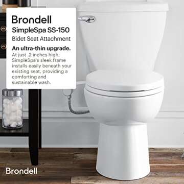 Show more The Brondell Thinline SimpleSpa SS-150 is a revolutionary addition to your bathroom essentials, blending elegance with unparalleled functionality. At an ultra-thin profile of just 0.2 inches, this bidet attachment is designed to fit seamlessly on any standard toilet without a gap, ensuring a clean and sophisticated appearance. One of its standout features is fresh water spray, which provides a refreshing cleanse with effortless operation. With a unique self-cleaning retractable nozzle and a complete nozzle guard, hygiene is taken to the next level.