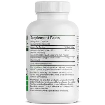 Show moreExperience the natural power of stress management with Bronson Ashwagandha Extra Strength. This superior supplement combines the equivalent of **3000 mg Ashwagandha Herb Powder** from a potent **150 mg 20:1 extract** to effectively tackle everyday stressors and promote a balanced mood. Backed by the inclusion of **BioPerine**, clinically shown to enhance nutrient absorption, this formula stands out as a leader in adaptogenic herbs, helping your body adapt and cope with stress in a natural way.