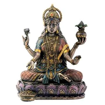 Bronze Hindu Goddess Lakshmi On Lotus Hinduism Display Statue
