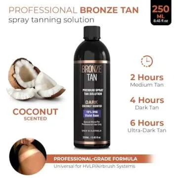 Bronze Tan Spray Tan Solution Professional Tanning Solution for Spray Tan Machine - Coconut Scented Sunless Tanning Solution Dark for Airbrush Tan (250ml / 8.45fl oz)