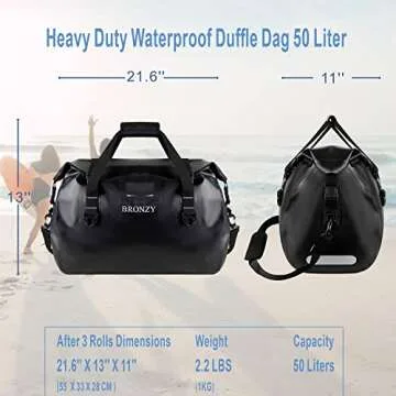 Show moreDiscover unparalleled performance with the BRONZY Waterproof Duffel Bag, designed for all your outdoor adventures. This sturdy bag is constructed from 500D PVC tarpaulin material, featuring heat seal finishing that ensures maximum waterproof protection. Whether you're sailing, fishing, camping, or kayaking, this duffel bag offers the reliability you need to keep your gear safe and dry.