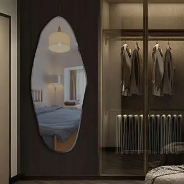 Broojo Irregular Wall Mirror Asymmetrical Accent Wall Mounted Mirror 19.6 x 47 Inch for Living Room Bathroom Entryway, Shaped Dressing Mirror for Wall, Water Droplets Type